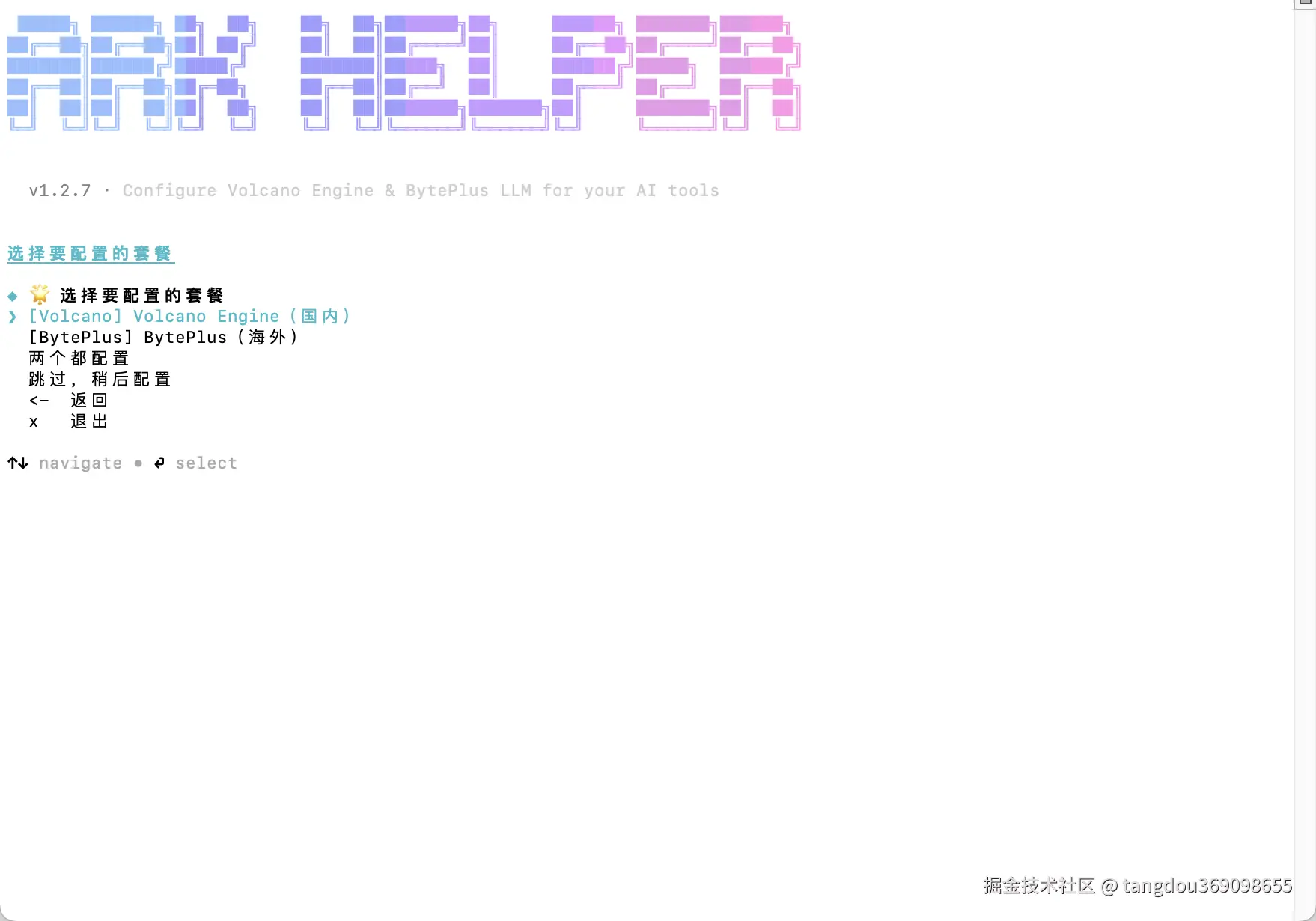 - 以下配置步骤及截图为 Ark Helper 首次使用指引;非首次使用请按界面提示完成套餐配置和工具配置。