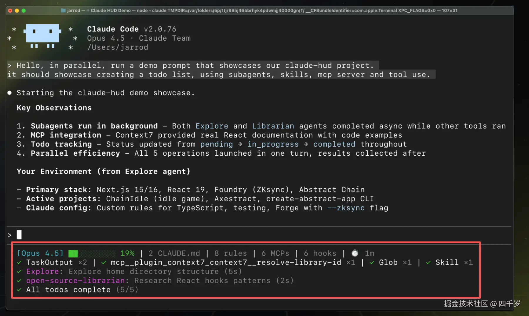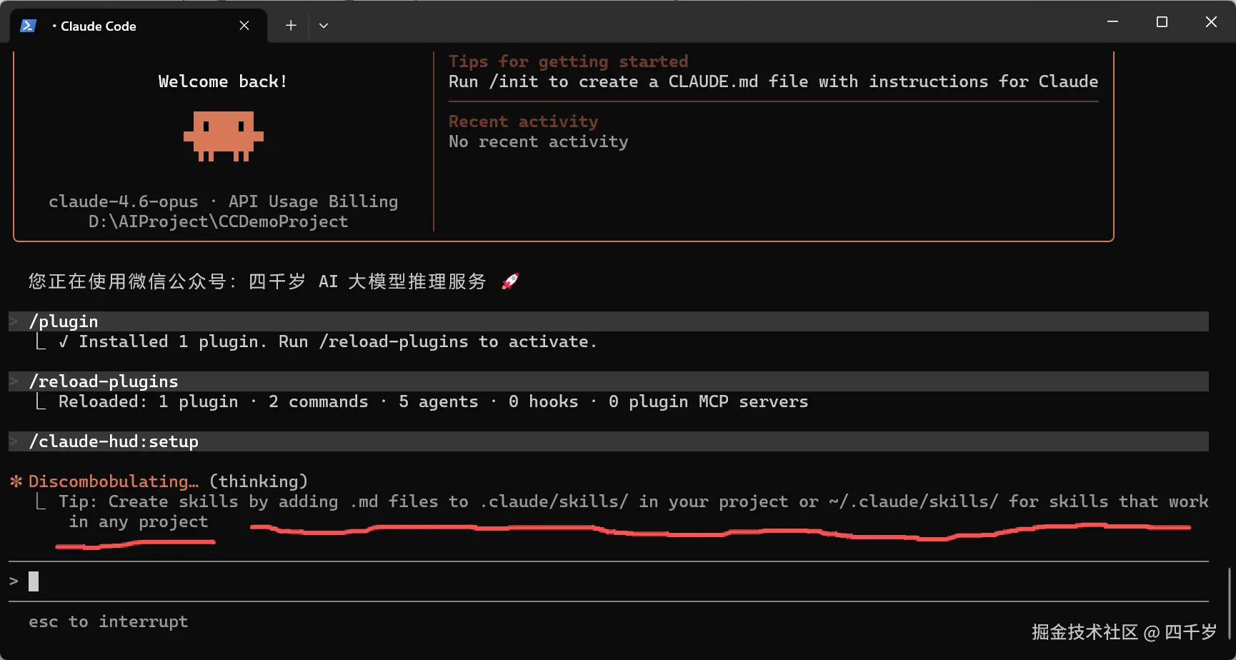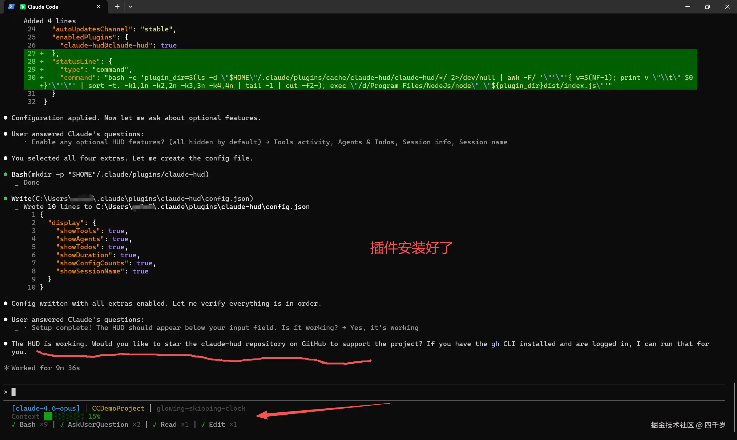 你还可以安装ClaudeCode的第三方插件claude-hud,可以更加方便的查看你的Token使用量。