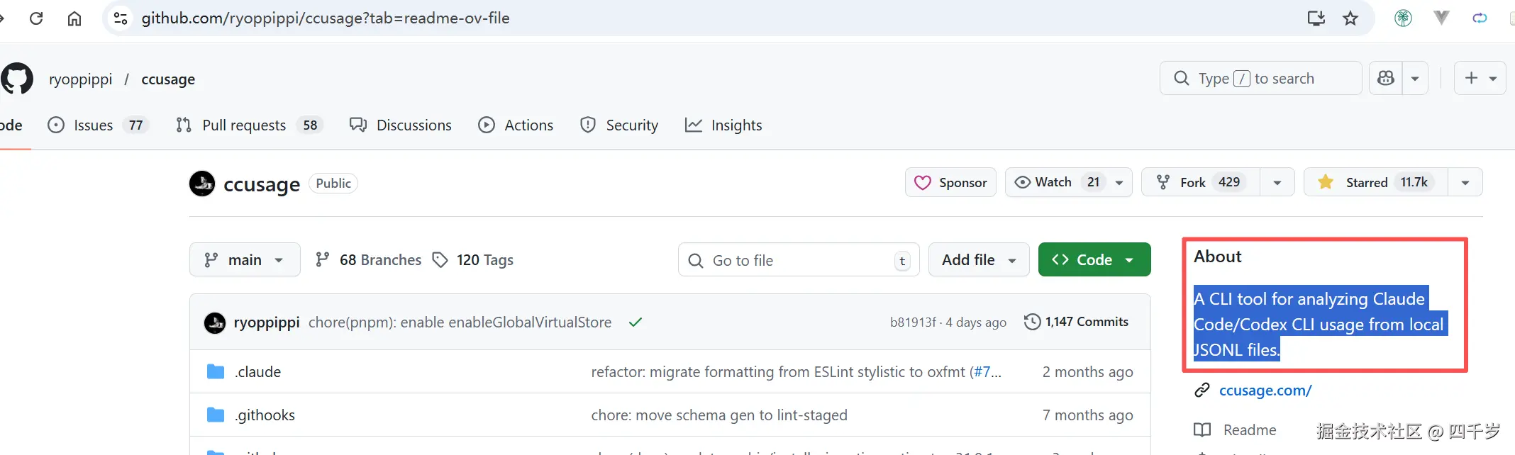 ccusage 简介:A CLI tool for analyzing Claude Code/Codex CLI usage from local JSONL files.(一款命令行工具,可从本地 JSONL 日志文件中统计 Claude Code、Codex 的 Token 使用量及相关使用数据)。