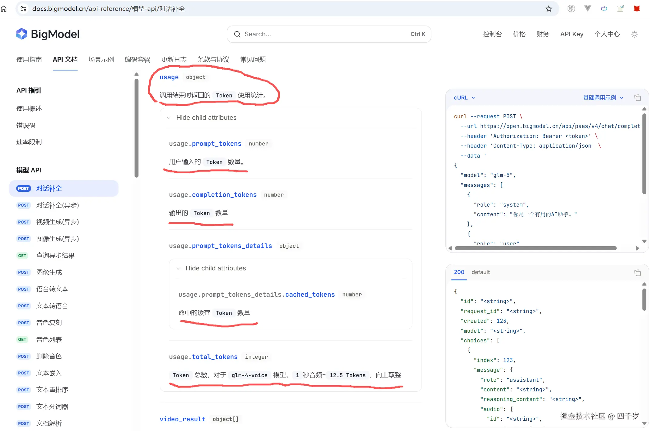 大模型的返回报文里面有这样一个字段usage,这个字段返回的就是你本次请求消耗的Token总数。这个就相当于大模型公司给你开的收据了。我们可以查看大模型公司官网的接口说明,MiniMax 的接口说明,如下截图: