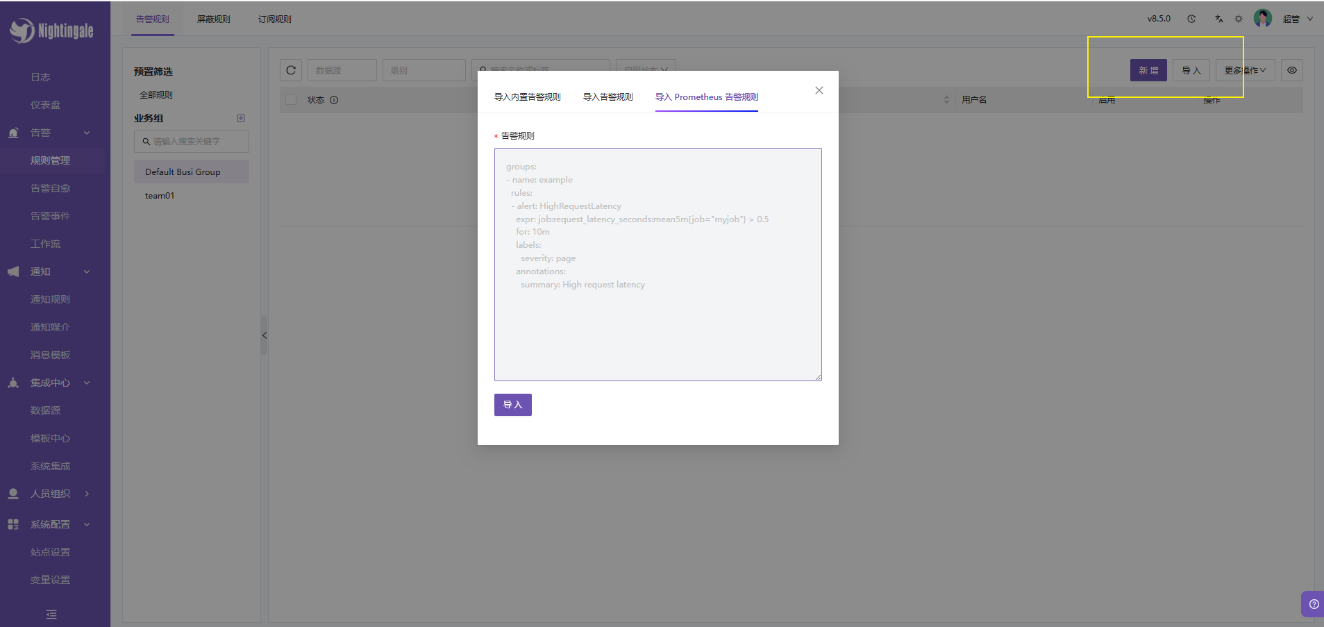 告警策略是夜莺实现告警管理的核心,需基于接入的 Prometheus 指标,设置触发条件、关联告警通道,步骤如下: