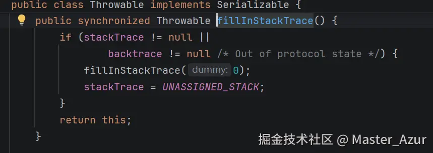 Throwable是匹配如下图所示的构造方法,并调用了fillInStackTrace()方法