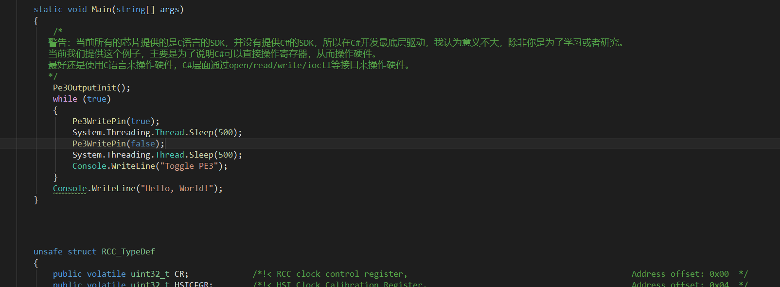 我们在此基础上,构建了完整的Ics C# SDK开发环境。这意味着,开发者现在可以完全使用熟悉的C#语言进行单片机开发,无需编写或关注任何底层C代码,即可充分利用单片机硬件性能,快速实现复杂业务逻辑。