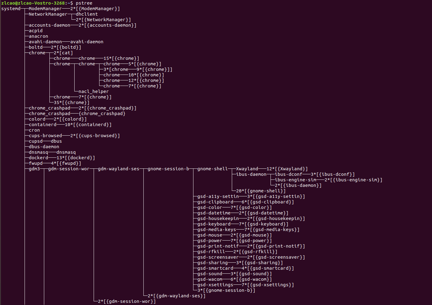 问题的答案竟藏在用户进程中,这点或许会让很多人感到意外,首要任务是理解进程的创建机制。Windows系统中的进程可通过系统调用请求创建新进程,系统会直接执行。而Linux类UNIX系统要求进程先申请自我克隆, 克隆产生的进程再请求替换自身程序,两种系统管理进程创建的方式存在哲学层面的差异,但核心理念始终一致。用户进程皆由其它用户进程创建。 请思考一下,如果所有用户进程都由其它用户进程创建,那就意味着每个进程都有创建它的父进程,但由于这些父进程本身也是用户进程,它们必然也被其它用户进程创建,以此类推。这意味着,如果我们向上 追溯,最终会发现一个作为所有用户进程始祖的单一进程。在LINUX系统中,你实际上可以通过运行pstree命令来可视化这颗树状结构,正如下图所示: