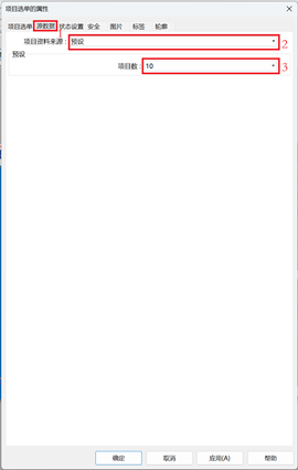 返回到上述画面1(首个画面),双击画面项目选单弹出项目选单的属性,弹出并设置如下内容: