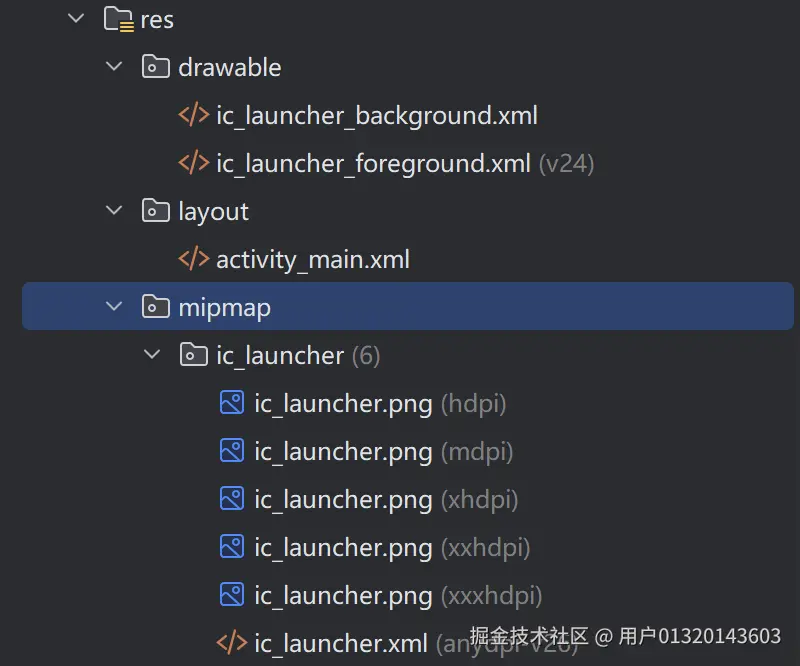 xml@mipmap/ic_launcher <!-- 引用 mipmap 图片 --> @drawable/icon <!-- 引用 drawable 图片 -->