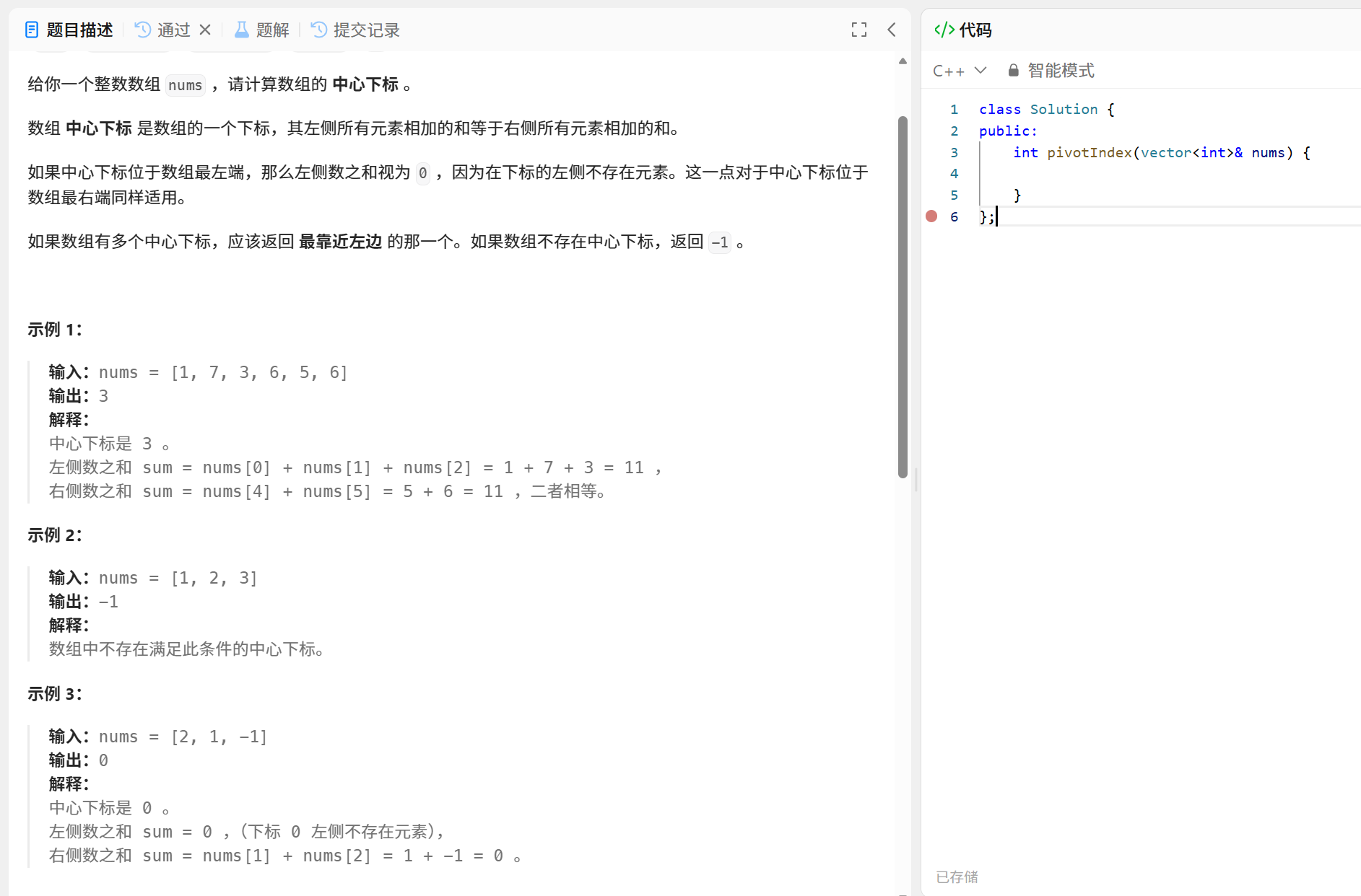 题目解析:找到一个下标,使它左边的和等于右边的和。