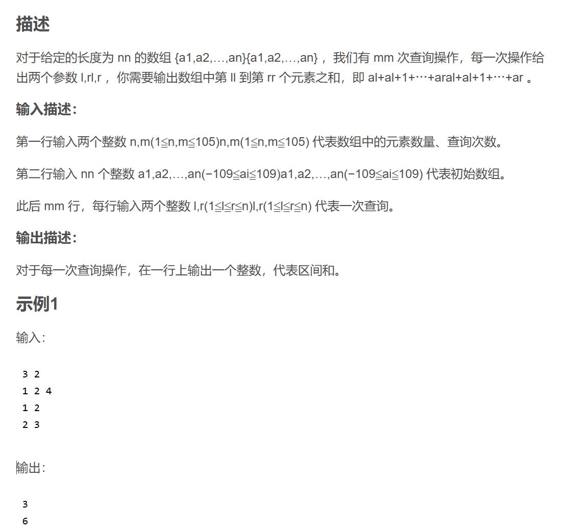 定义一个数组来保存从1下标开始到i下标的和,这样求l到r的和就转变成了dp[r]-dp[l-1],时间复杂度从O(n)降到了O(1)