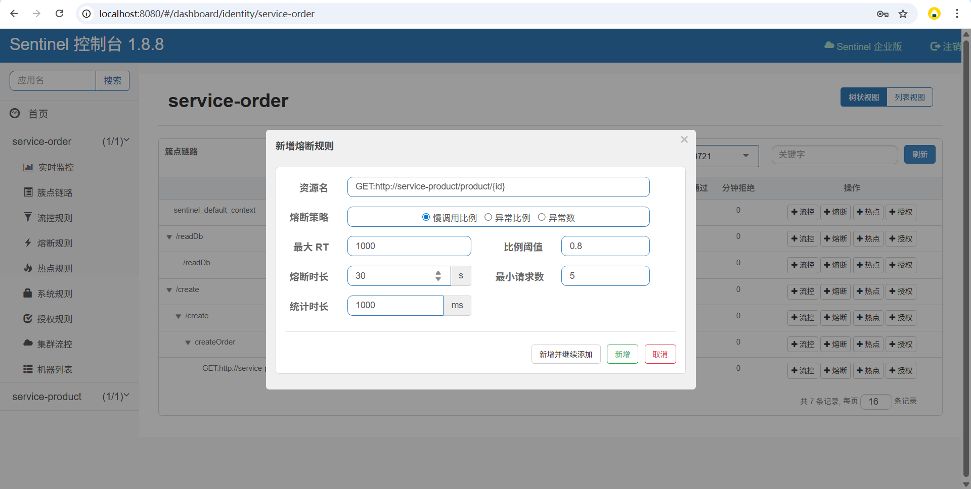 统计时长:统计慢调用 / 异常的时间窗口(如 1000ms,即 1 秒内统计)