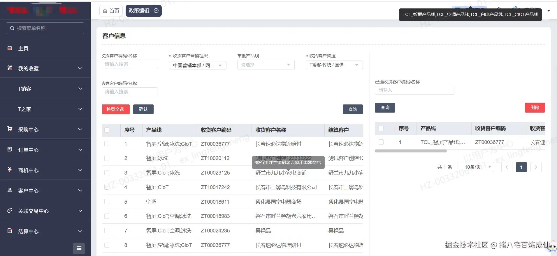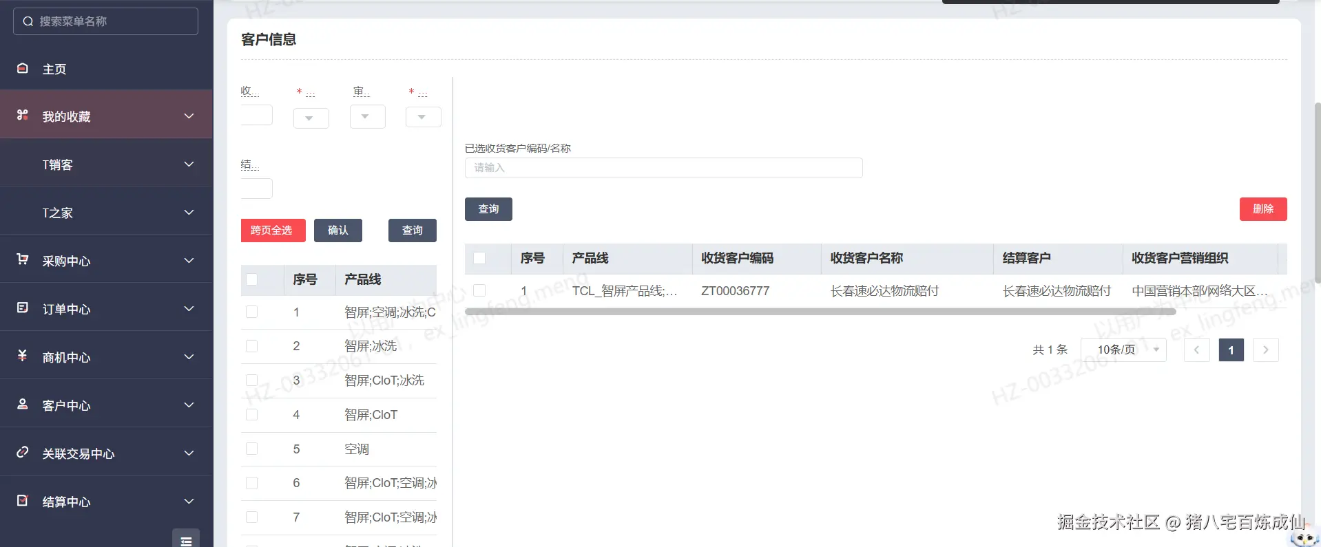 - 客户信息管理:左侧客户查询列表,右侧客户详情确认