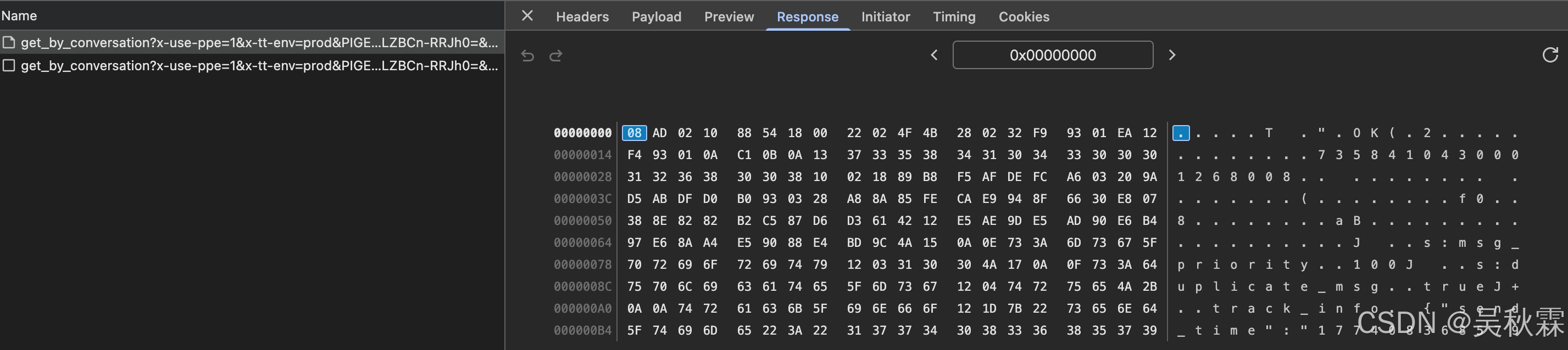本期分析一个某电商后台聊天会话实时消息明文数据解析!在很多IM、实时消息,请求体并不是JSON,而是Protobuf二进制流,请求头里面通常会出现application/x-protobuf,真正的业务字段不在URL里面,而是在二进制payload中,前端代码中往往可以看到encode|decode及RequestBody.create(...)一类逻辑