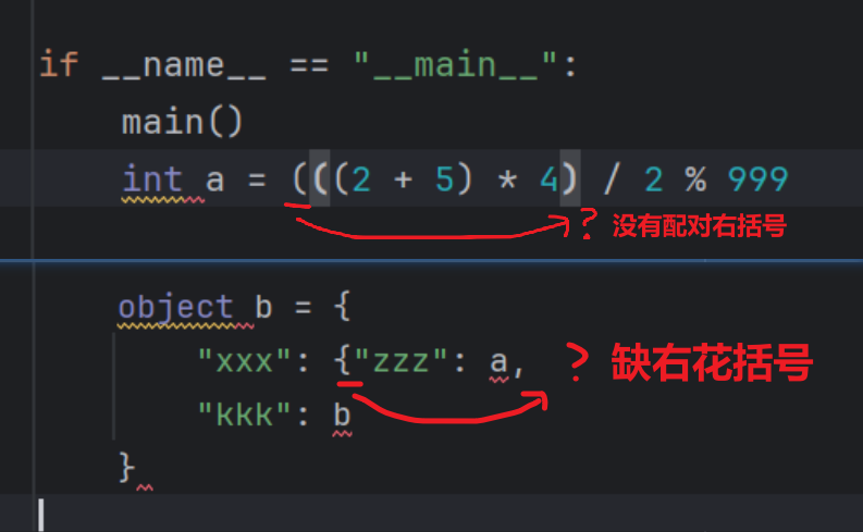 在这个规则下,那么出现以下这三情况肯定就是出现了【括号不匹配】的错误
