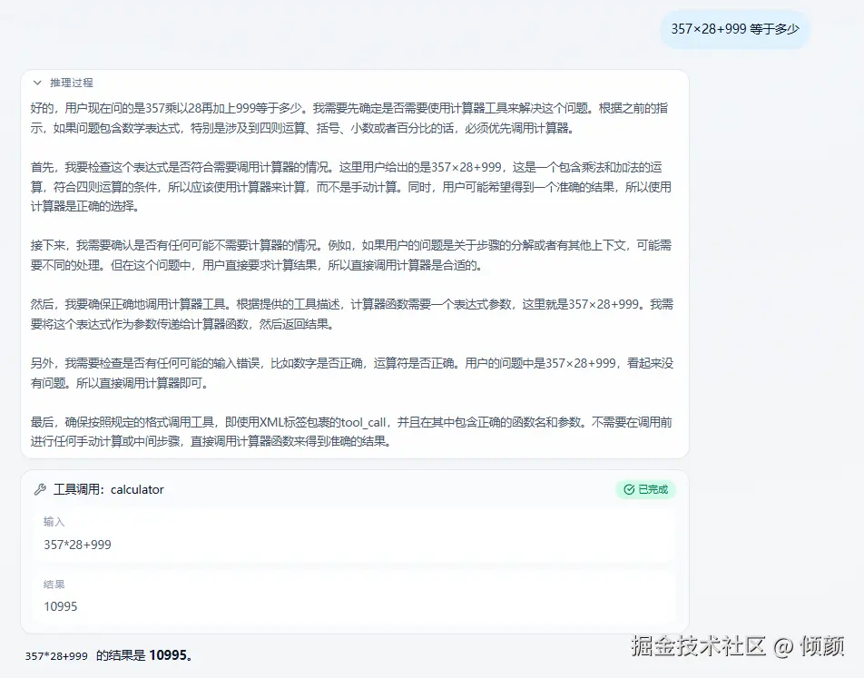理论上模型已经绑定了 calculator,但实际运行里,它仍然可能: