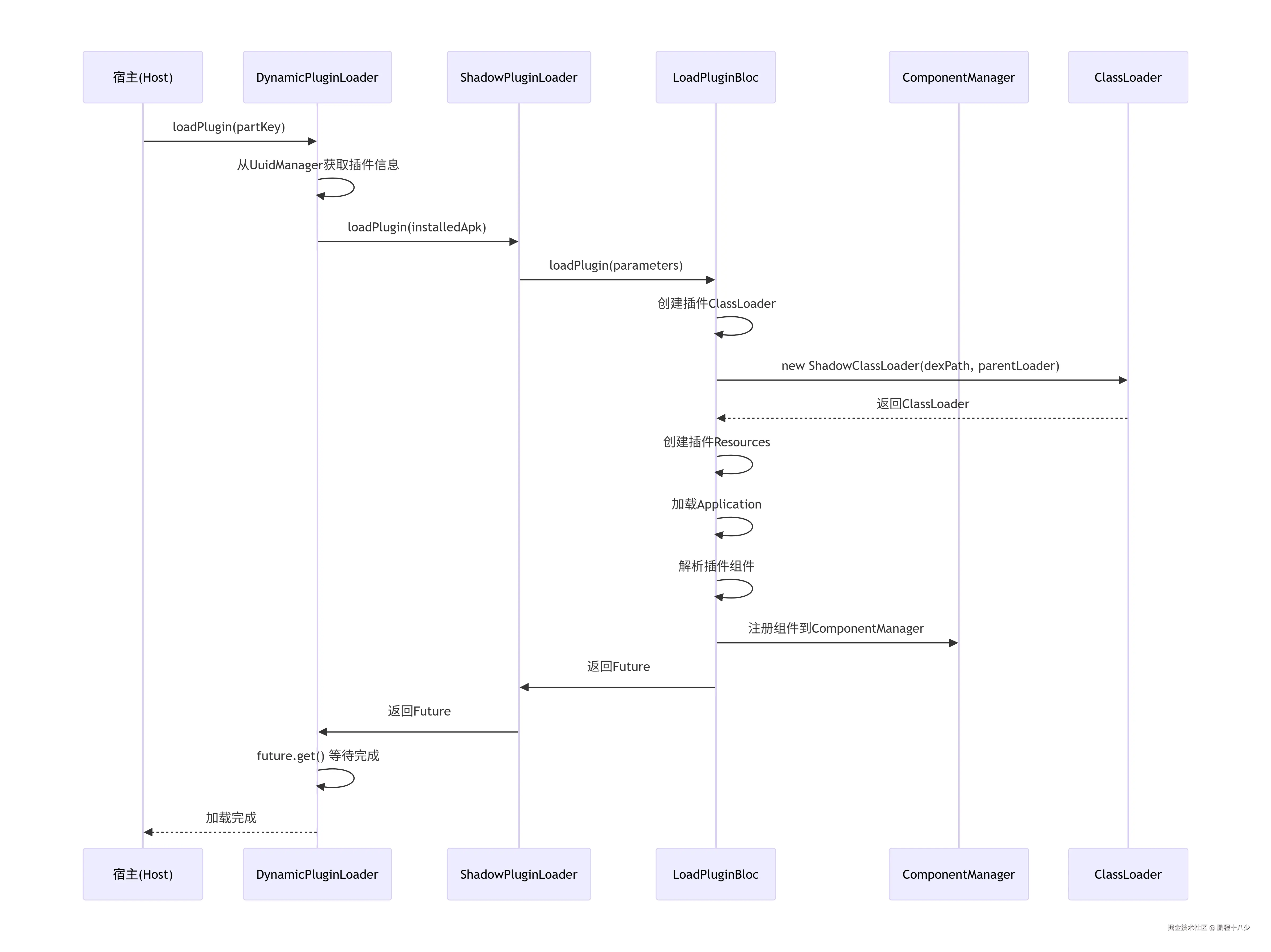 业务插件] LOADER -->|提供运行环境| RUNTIME RUNTIME -->|承载运行| PLUGIN PLUGIN -->|回调接口| LOADER end