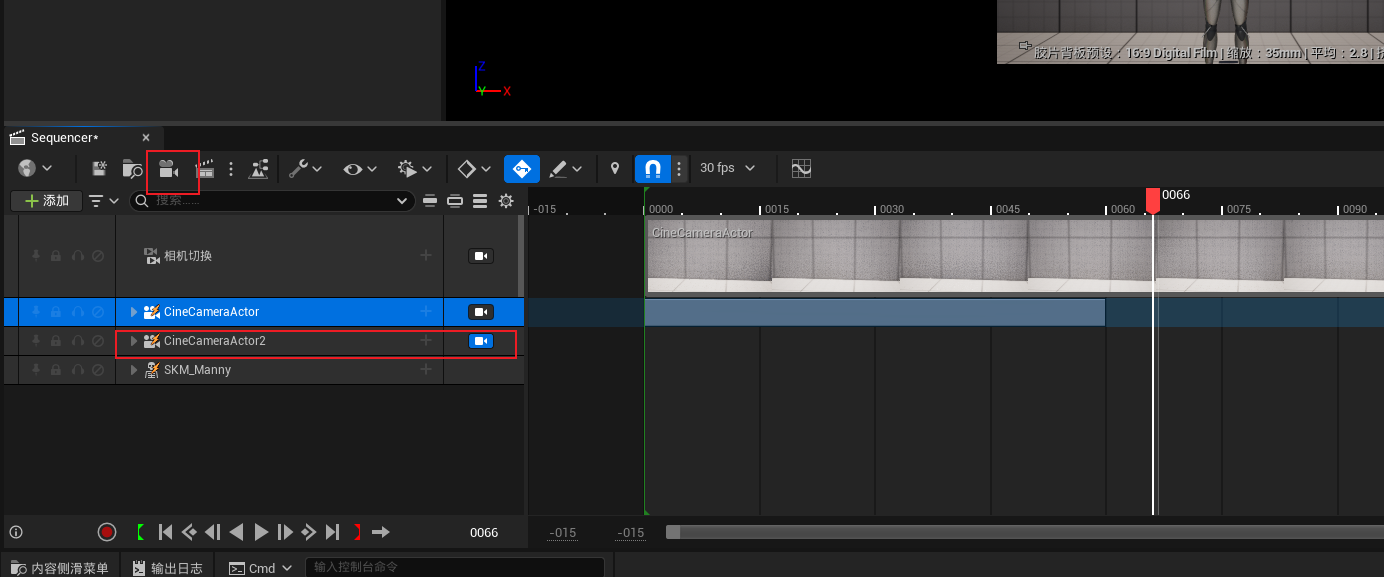 我们可以点击新建相机图标来添加一个摄像机。然后我们点击摄像机后面的图标,此时就会切换当前相机的视角。