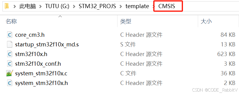从解压后的标准库中,将以下文件复制到工程CMSIS文件夹: