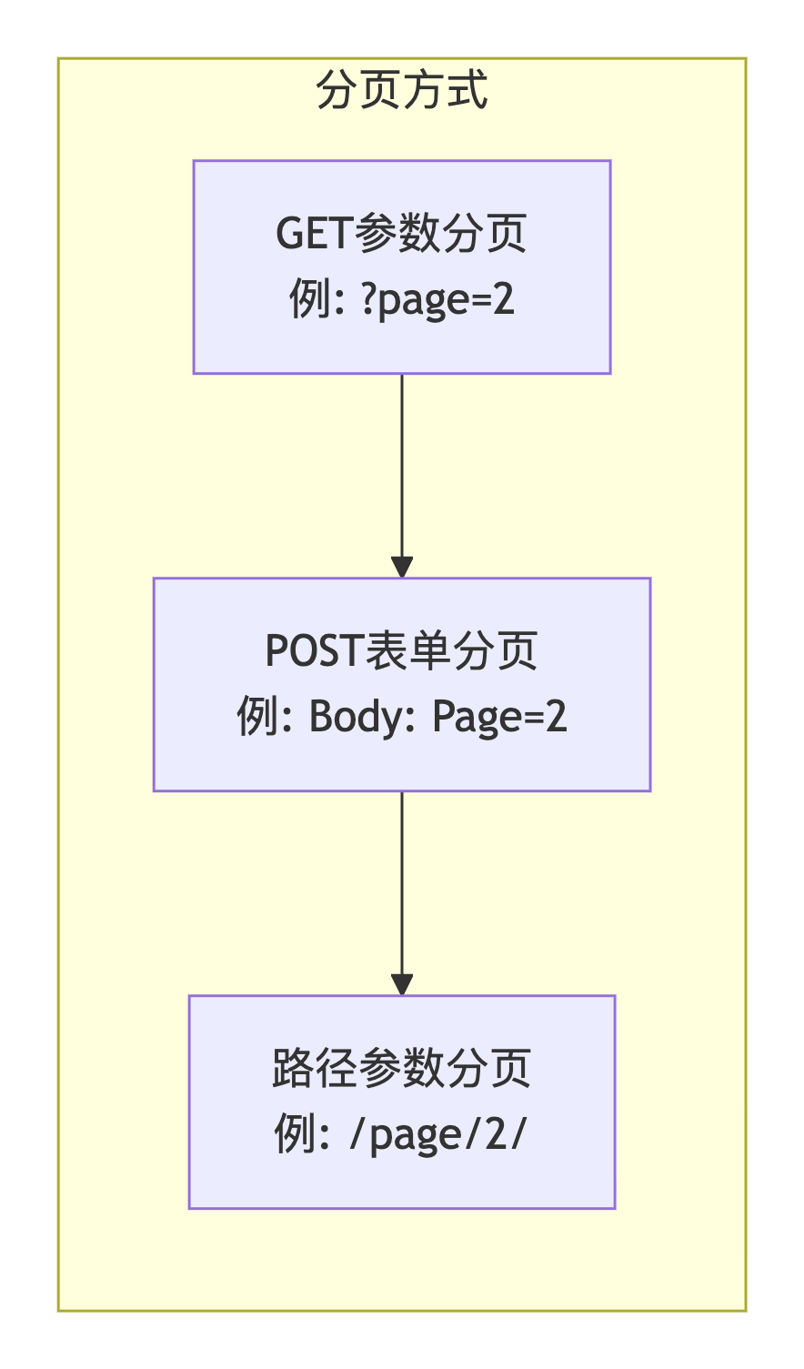 | 分页方式 | 路径参数/page/2/ | POST表单参数 | GET参数?page=2 |