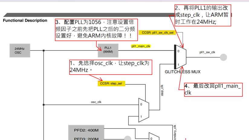 - 还可旁路 PLL,直接使用 OSC 24MHz 或其他外部时钟。