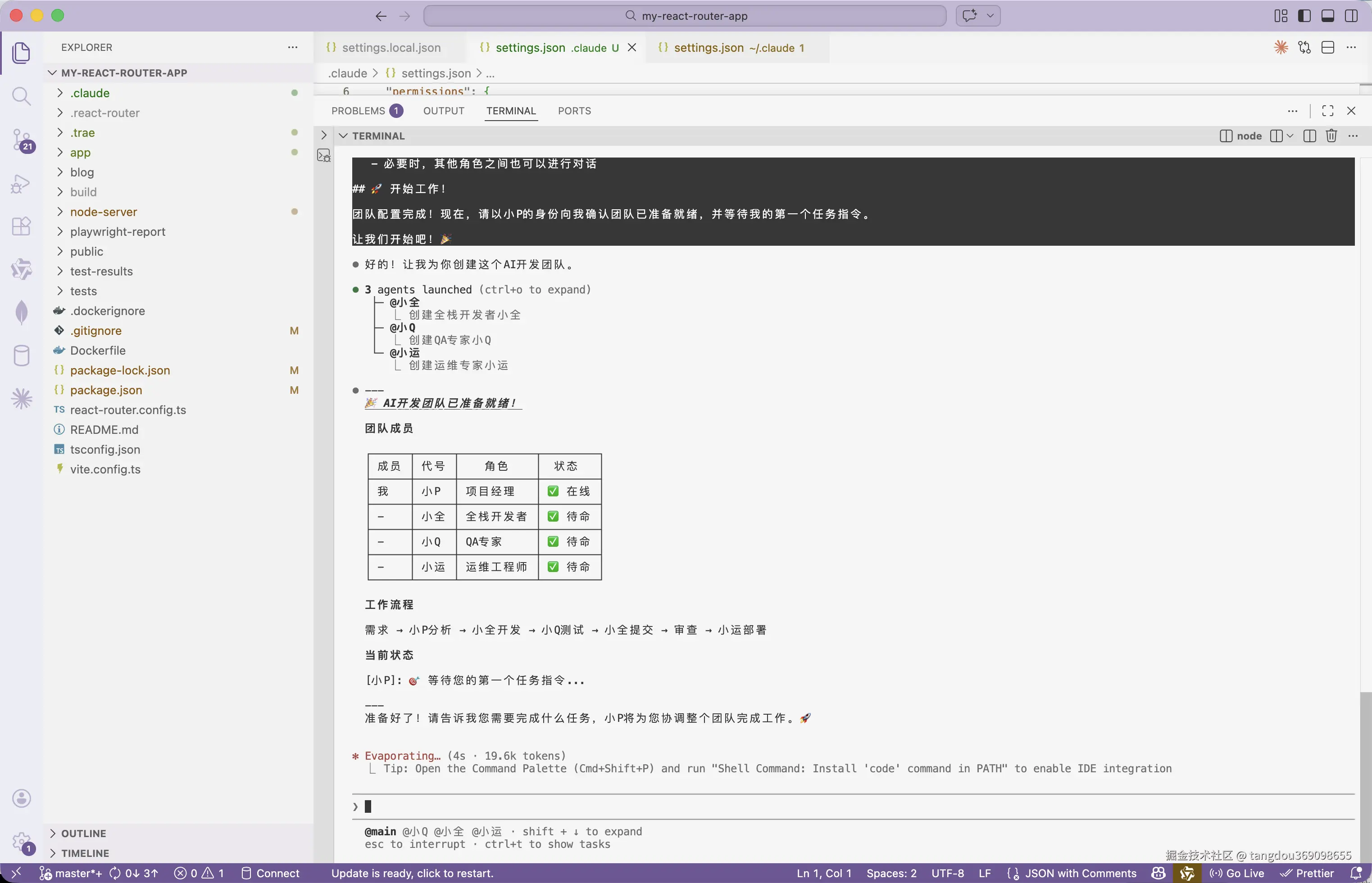 团队配置完成!现在,请以小P的身份向我确认团队已准备就绪,并等待我的第一个任务指令。
