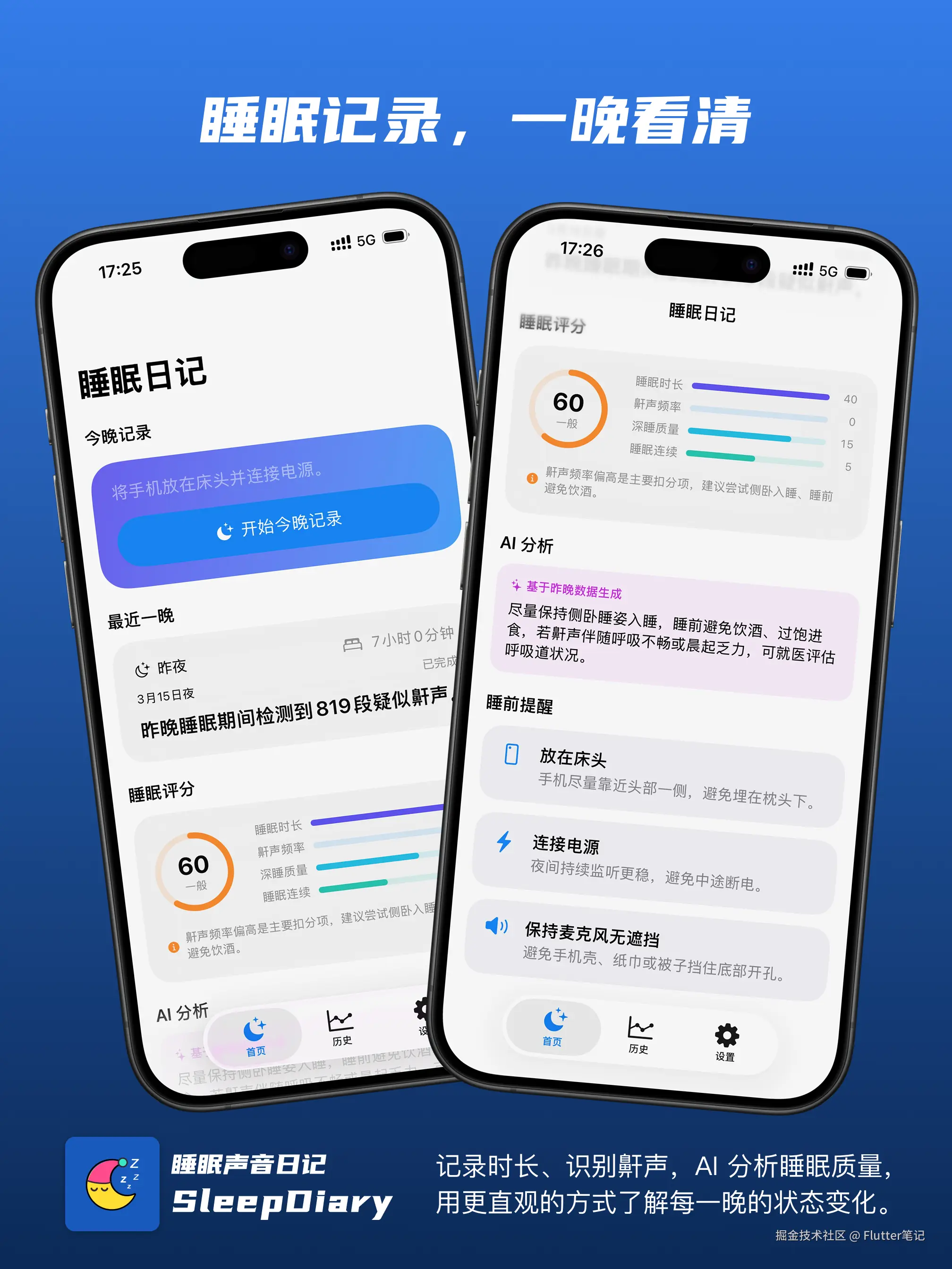 最近做了一款叫「睡眠声音日记」的App,主要用来记录睡眠时的鼾声和梦话。