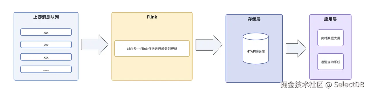- 存储层:更新数据最终写入 HTAP 数据库的单张无分区宽表中;