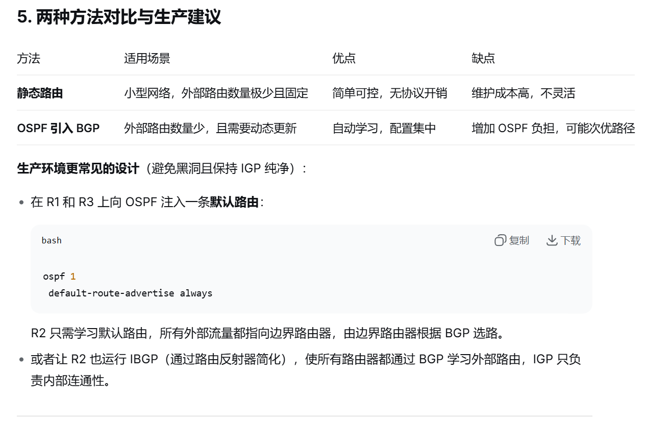 但现网中,为了简单稳定,我们通常直接配 next-hop-local,保证路由一定能用。