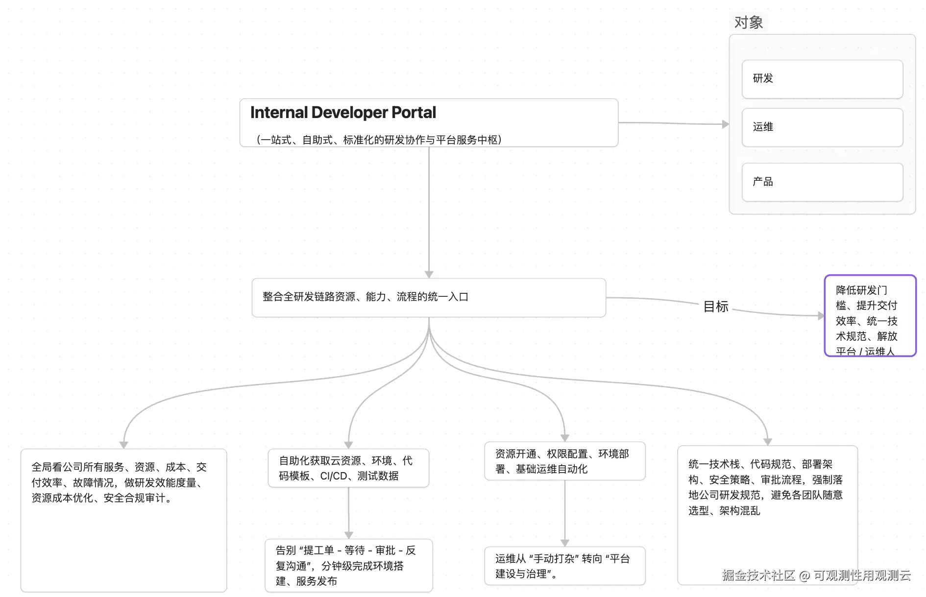这件事,就是系统可观测性要做的事情,但是有个大前提 ------ 不允许可观测改变 IDP 的路线,不替换 IDP 的流程,不打乱大家的工作习惯,它只是安静地陪在 IDP 身边,全程看护它、记录它、呈现它。