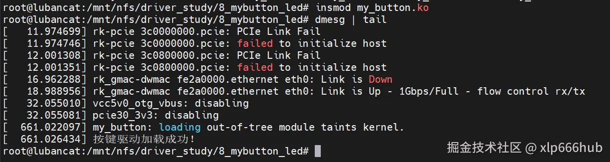 打印出 按键驱动加载成功! ,说明 probe 初始化成功了。