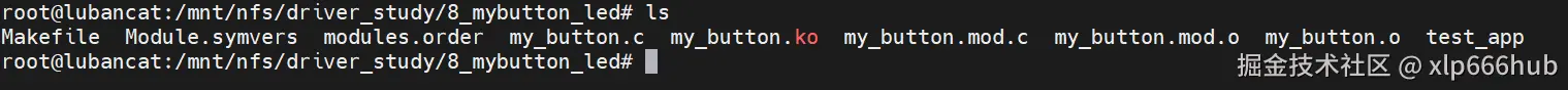 my_button.ko 是我们等会要加载的模块,test_app 文件夹里面装的是我们的用户程序。