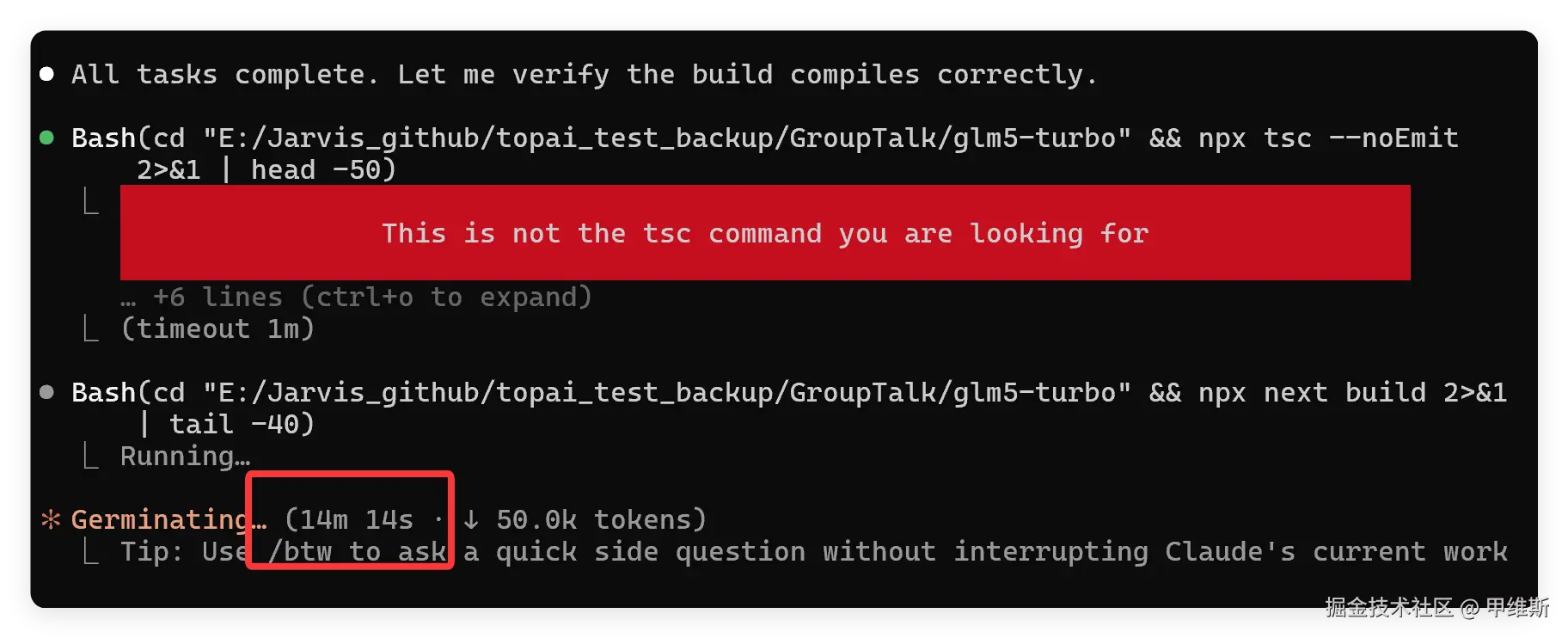 看到这里我有一种错觉,我不会忘了把 Claude Opus 切换成 GLM-5-Turbo 吧? 这个过程太像 Opus 4.6 的风格了!