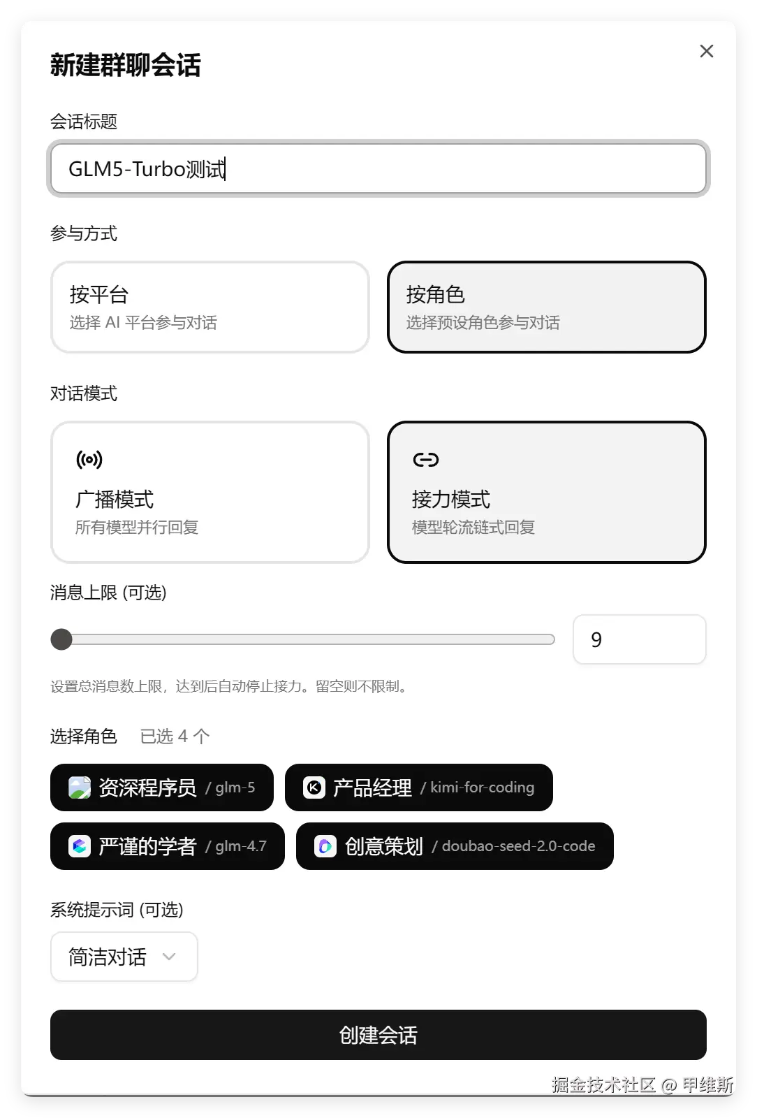 这是 GLM-5 的群聊创建功能: