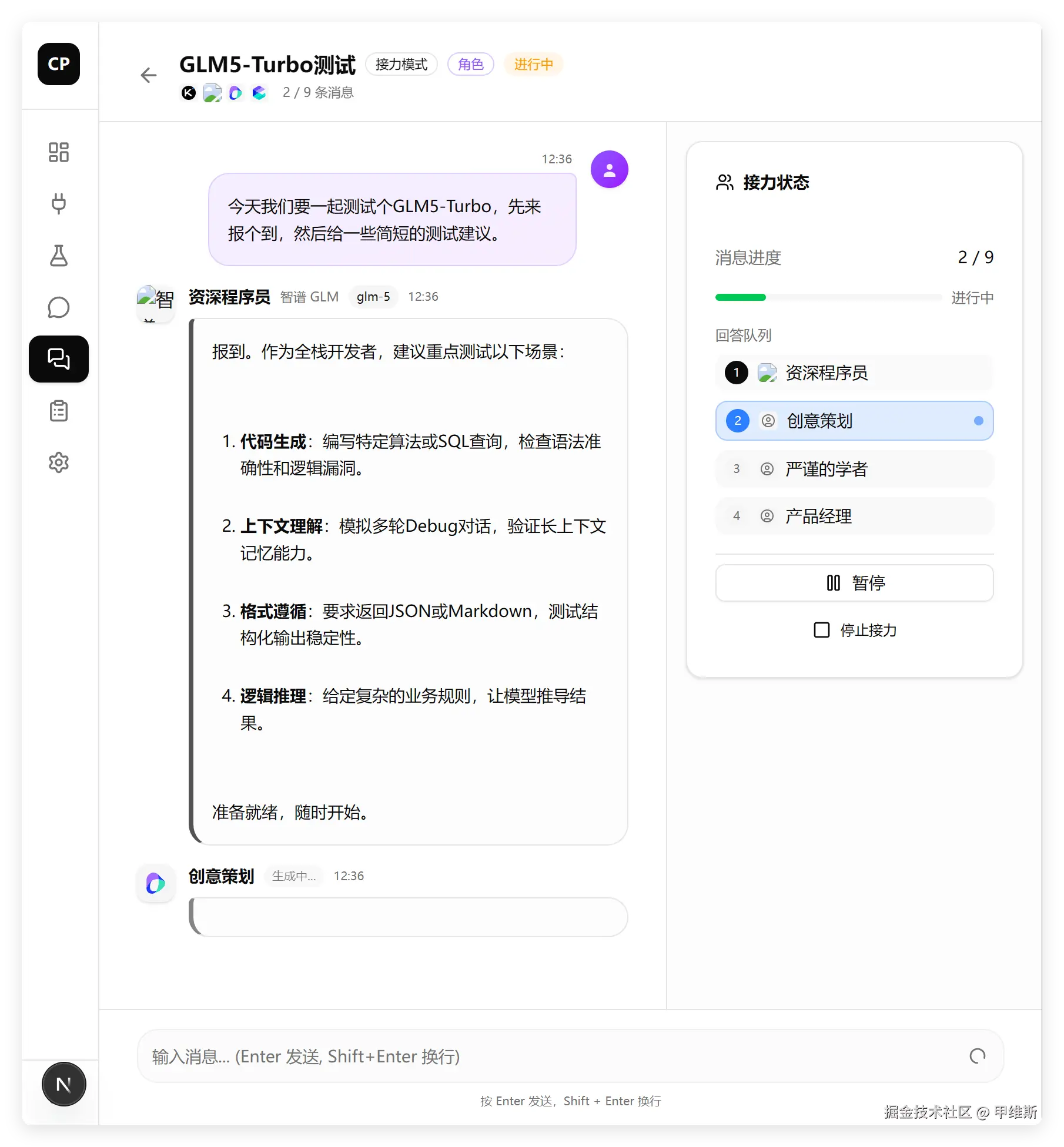 这是 GLM-5 的群聊功能: