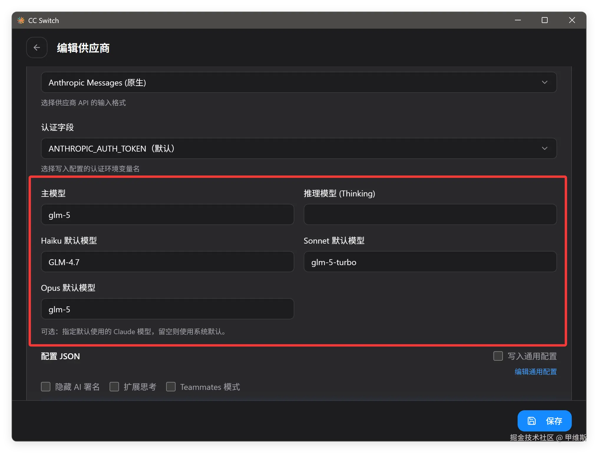 可以如上图配置,如果你想直接体验使用 Turbo 模型,可以把主模型直接切换成 glm-5-turbo。