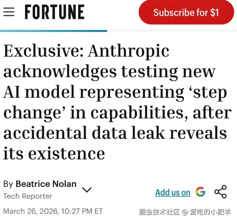 Anthropic 发言人接受《财富》采访时也没否认,说这是"一次能力层面的跃迁"。