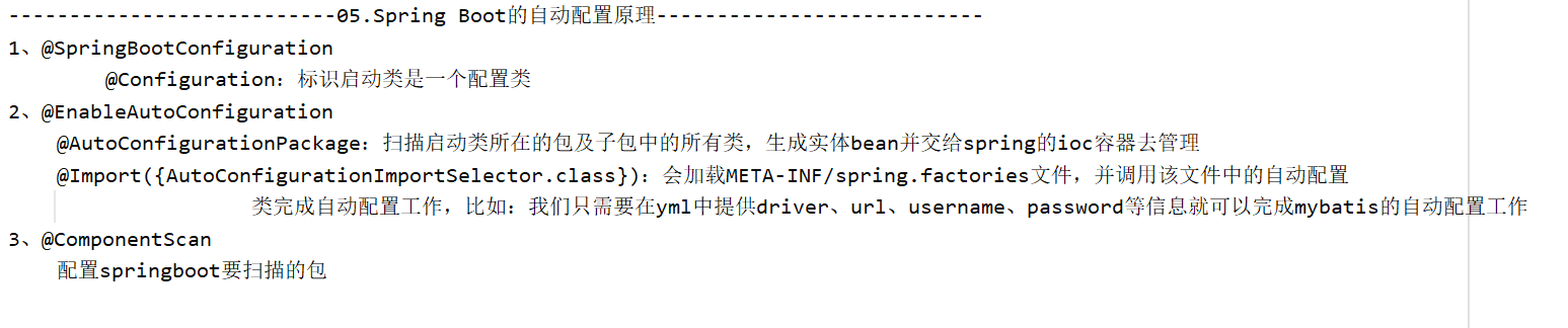 @AutoConfigurationPackage:通过AutoConfigurationPackages.Registrar扫描启动类所在包及子包的组件。@Import(EnableAutoConfigurationImportSelector.class):读取META-INF/spring.factories中的配置类,加载到 IOC 容器完成自动配置。