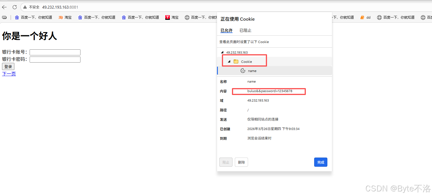 我们也可以通过我们上一篇博客中的代码进行验证,只在响应报文中的报头中增加Set-Cookie: username=bulouo&password=12345678