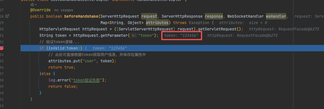public boolean beforeHandshake(ServerHttpRequest request, ServerHttpResponse response, WebSocketHandler wsHandler,
