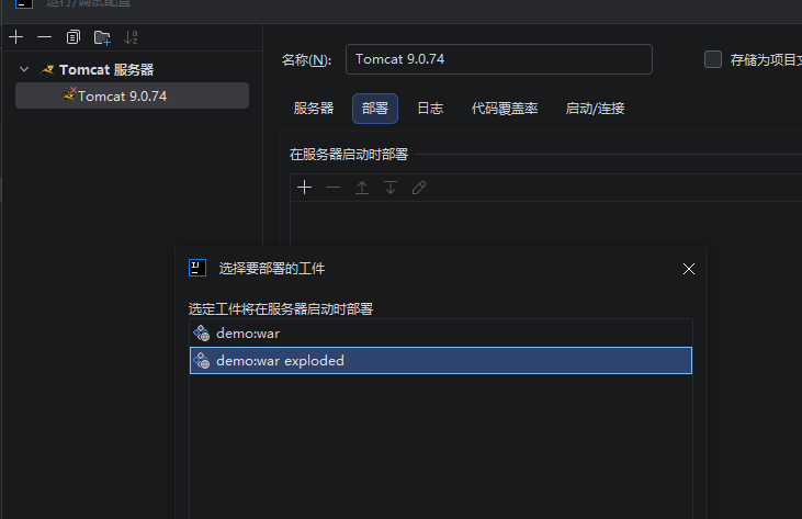 demo:war:是打包好的静态.war包,Tomcat 只会加载打包时的代码,你新写的HelloServlet2不会被自动更新进去。demo:war exploded:是「展开式部署」,Tomcat 会直接读取你项目里的最新源码和编译文件 (target/classes+src/main/webapp),改完代码后只要按Ctrl+F9构建,Tomcat 就能立刻加载新代码,非常适合开发阶段。