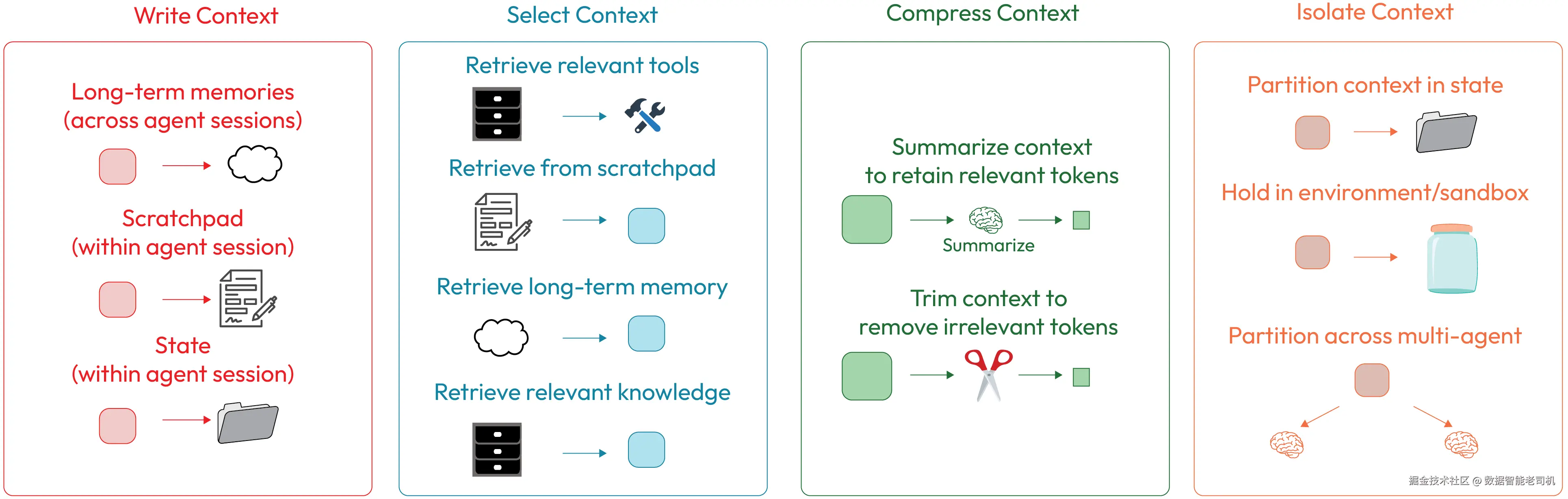 图 1.4 ------ 上下文工程的分类 (改编自 LangChain 讨论的相关概念,www.langchain.com)
