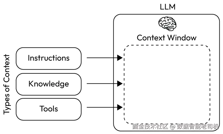 图 1.1 ------ LLM 上下文窗口 (改编自 LangChain 讨论的相关概念,www.langchain.com)