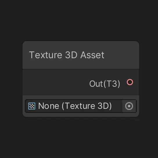 Texture 3D Asset 节点的核心控件是一个 3D 纹理对象字段,这个控件提供了与 Unity 项目资源系统的直接交互接口。对象字段的设计遵循了 Unity 编辑器的通用模式,使得熟悉 Unity 的开发者能够快速上手使用。