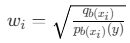 weights_map(i,j) = kernel_val * sqrt(target_model(bin_idx) / (cand_model(bin_idx) + eps));