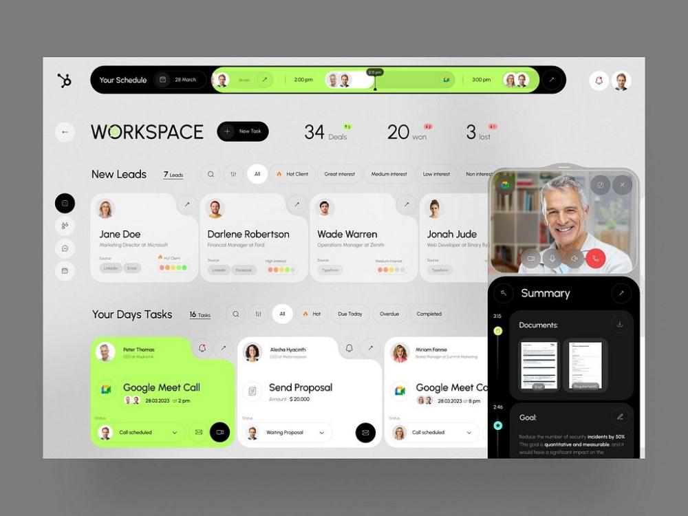 - 模块化布局:将潜在客户、日程任务、会议通话等模块有序排布,用标签区分客户意向度,用颜色标注任务优先级,让销售团队一眼获取核心信息,提升协作效率。