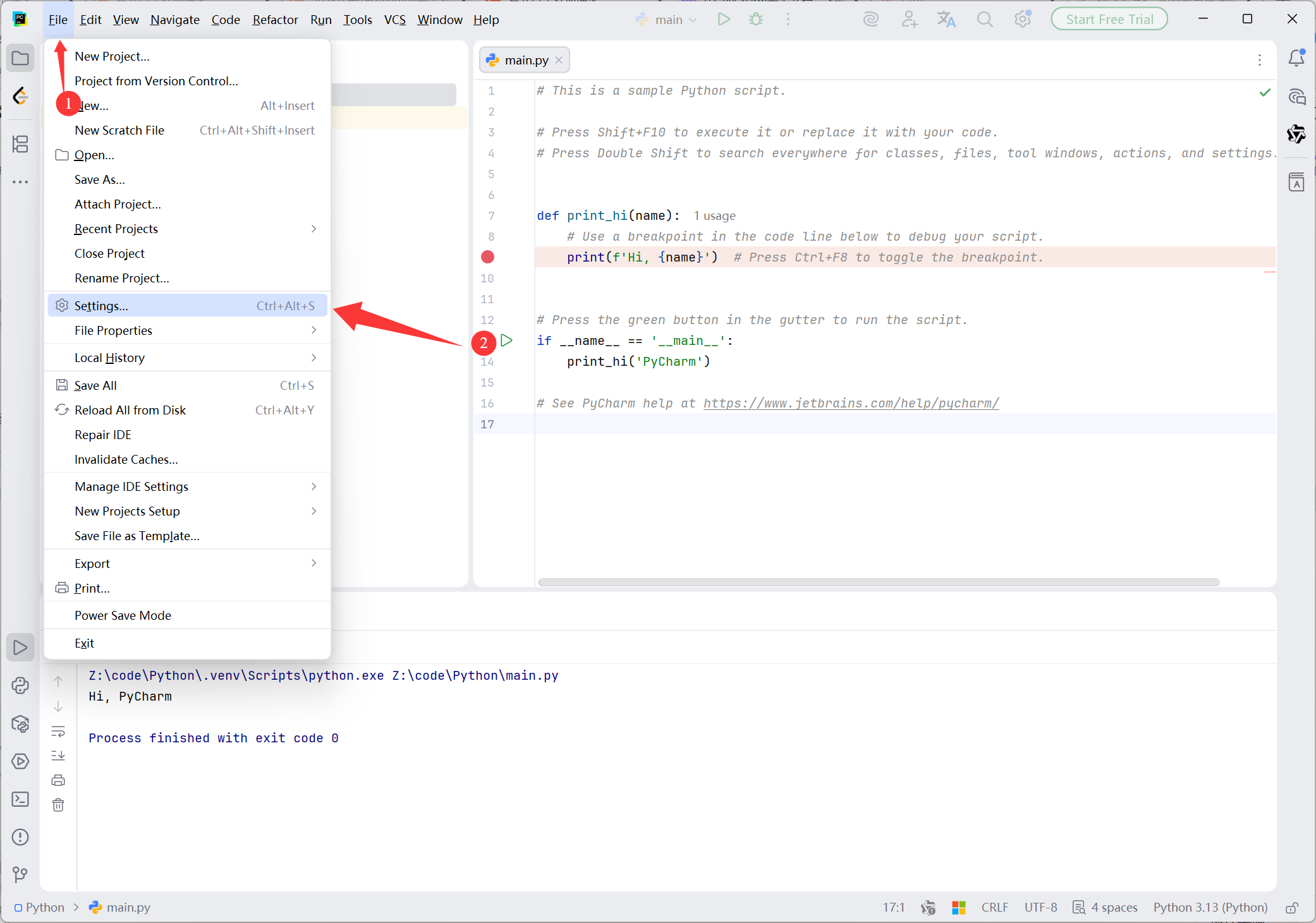 File → Settings
