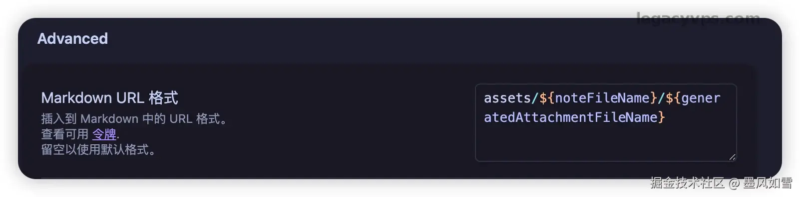 这里需要简单设置一下安放图片的位置,设置全部文件和图片位置需要设置。URL其实也不习惯不是标准的markdown文档的格式,所以需要设置一下。