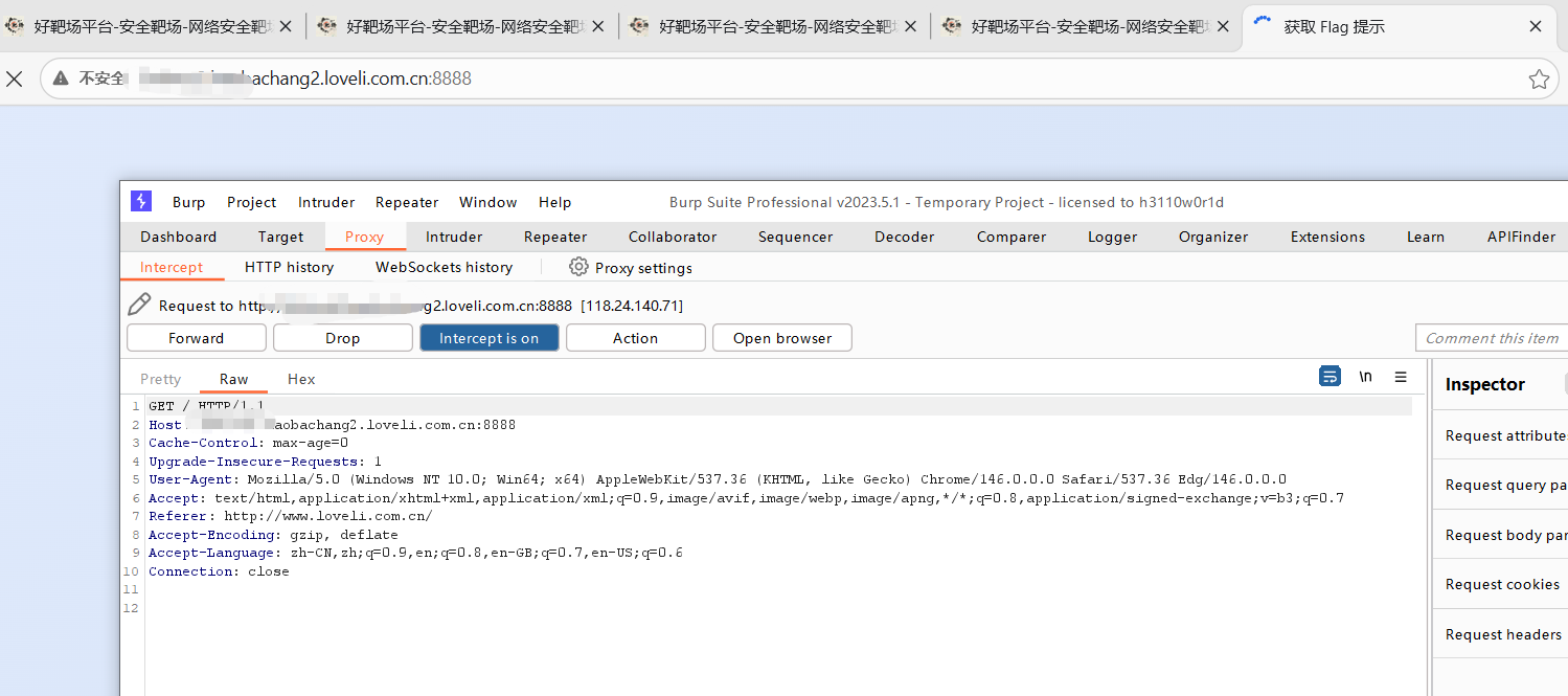 url = "http://5n6vos2.haobachang2.loveli.com.cn:8888/flag"靶场地址,指定请求