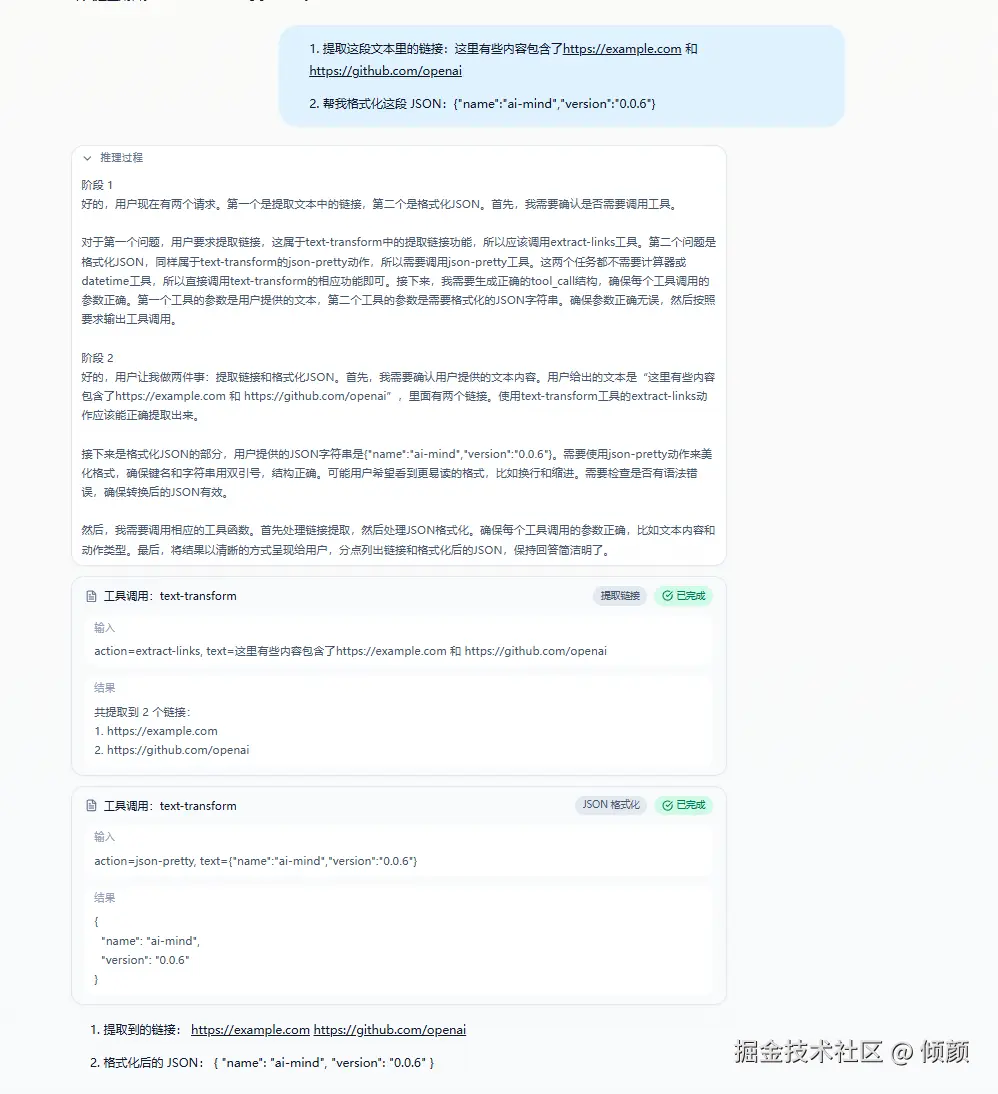 - 前端能稳定展示不同类型的工具调用
