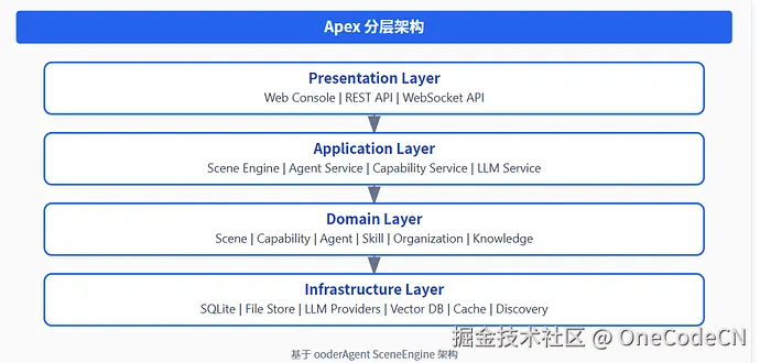 | 场景(Scene) | 场景是Apex的核心概念,代表一个完整的业务场景。场景 = 参与者 + 能力 + 知识库 + LLM |