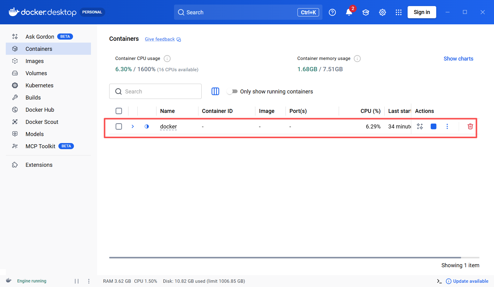 确保 Docker Desktop 中 Dify 相关容器处于运行状态。