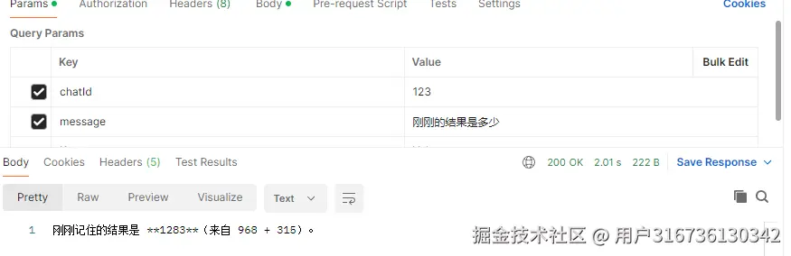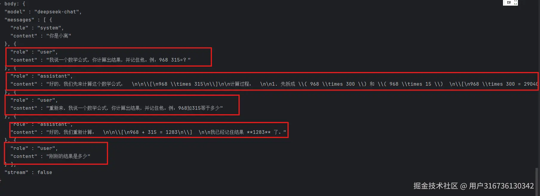 可见,他把我们之前对话的所有消息都存储了下来,并一次性都发送给了模型接口。